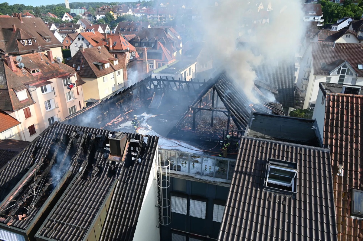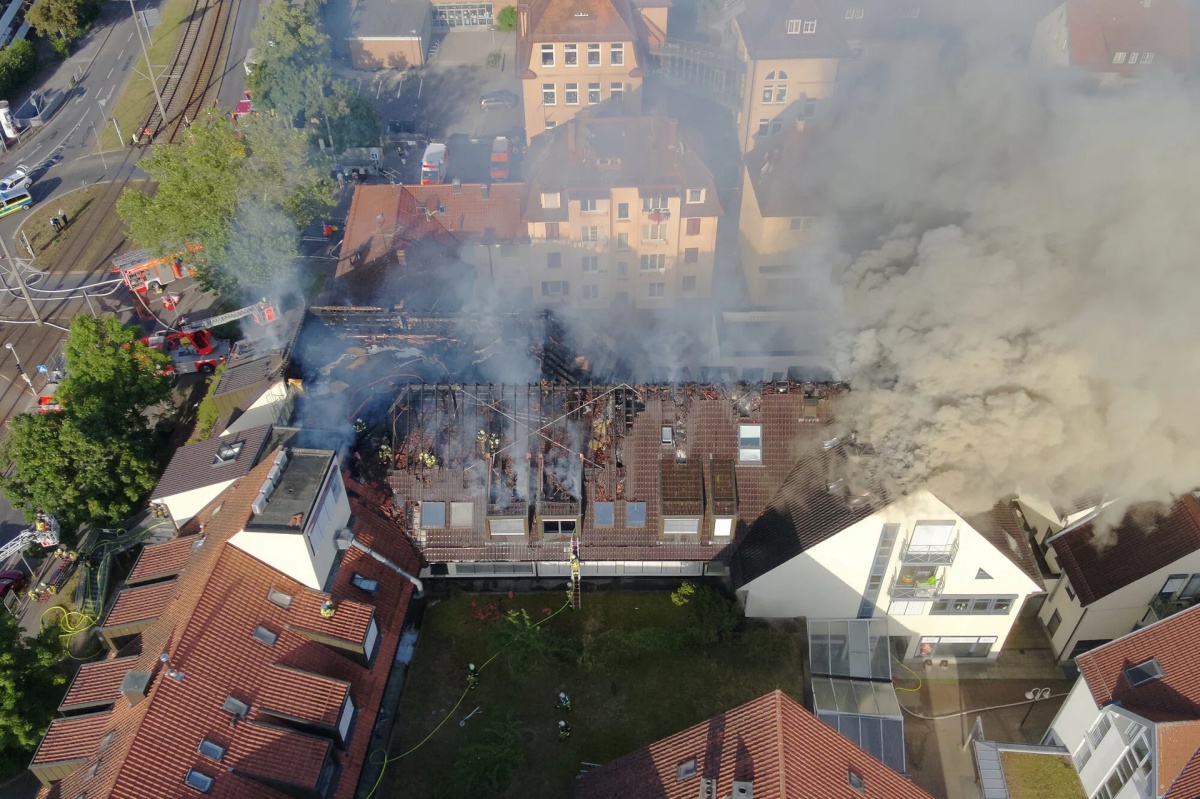 | Mi, 25.06.2025 17:54 Uhr Botnang Griegstr. | 2. Alarm, Ausgedehnter Dachstuhlbrand in Wohn- und Geschäftsgebäude Die Integrierte Leitstelle Stuttgart alarmierte uns und zahlreiche weitere Einsatzkräfte der Fotos: Branddirektion Stuttgart/Bildstelle Eingesetzte Kräfte: FF Abt. Botnang: MTW HLF 10/6 LF KatS Feuerwache 1: Kleineinsatzfahrzeug-Türöffnung Feuerwache 2: Inspektionsdienst, Löschzug, Wechselladerfahrzeug mit Abrollbehälter Atemschutz, Gerätewagen-Logistik Feuerwache 3: Direktionsdienst Feuerwache 4: Löschzug, Gerätewagen Atemschutz-Messtechnik, Abrollbehälter Atemschutz Feuer- und Rettungswache 5: Drehleiter, Wechselladerfahrzeug Verwaltungsstandort: Amtsleiter vom Dienst, Pressesprecher Abteilung Birkach: Gerätewagen-Messtechnik Abteilung Büsnau: Löschfahrzeug Abteilung Degerloch-Hoffeld: Einsatzleitwagen Abteilung Heumaden: Löschfahrzeug Abteilung Mühlhausen: Löschfahrzeug Abteilung Logistik: Mannschaftstransportfahrzeug, zwei Gerätewagen-Logistik Abteilung Rohracker: Löschfahrzeug Abteilung Sommerrain: Mannschaftstransportfahrzeug mit Drohne Abteilung Rotenberg: Löschfahrzeug Wachbesetzungen: Abteilungen Münster, Untertürkheim, Vaihingen, Stammheim, Weilimdorf, Sillenbuch Rettungsdienst: Zwei Rettungswagen, ein Krankentransportwagen, ein Notarzteinsatzfahrzeug, Organisatorischer Leiter Rettungsdienst, Leitender Notarzt, Psychosoziale Notfallversorgung | ||||
